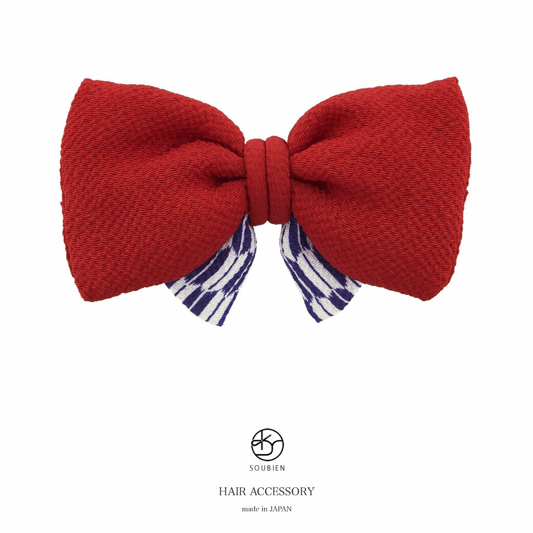 髪飾り 赤 レッド 紫 白 リボン 矢羽根 古典柄 縮緬 ちりめん ぷっくり コーム 髪留め 成人式向け 卒業式向け 振袖向け 袴向け ヘアアクセサリー 日本製 【あす楽対応】