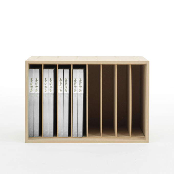 デザインや建築関連の本に多いA4サイズよりも少し大きめの本や雑誌を、上下、前後の無駄なスペースなくすっきり収納することができます。